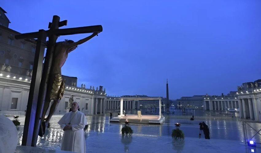 Giữa tình hình tăm tối này, vào lúc 6 giờ chiều ngày 27/3/2020, Đức Thánh Cha đã chủ sự giờ cầu nguyện tại Quảng trường Thánh Phêrô và ban phép lành Thánh Thể toàn xá Urbi et Orbi cho các tín hữu trong buổi cầu nguyện đặc biệt cầu cho thế giới trước đại dịch.
