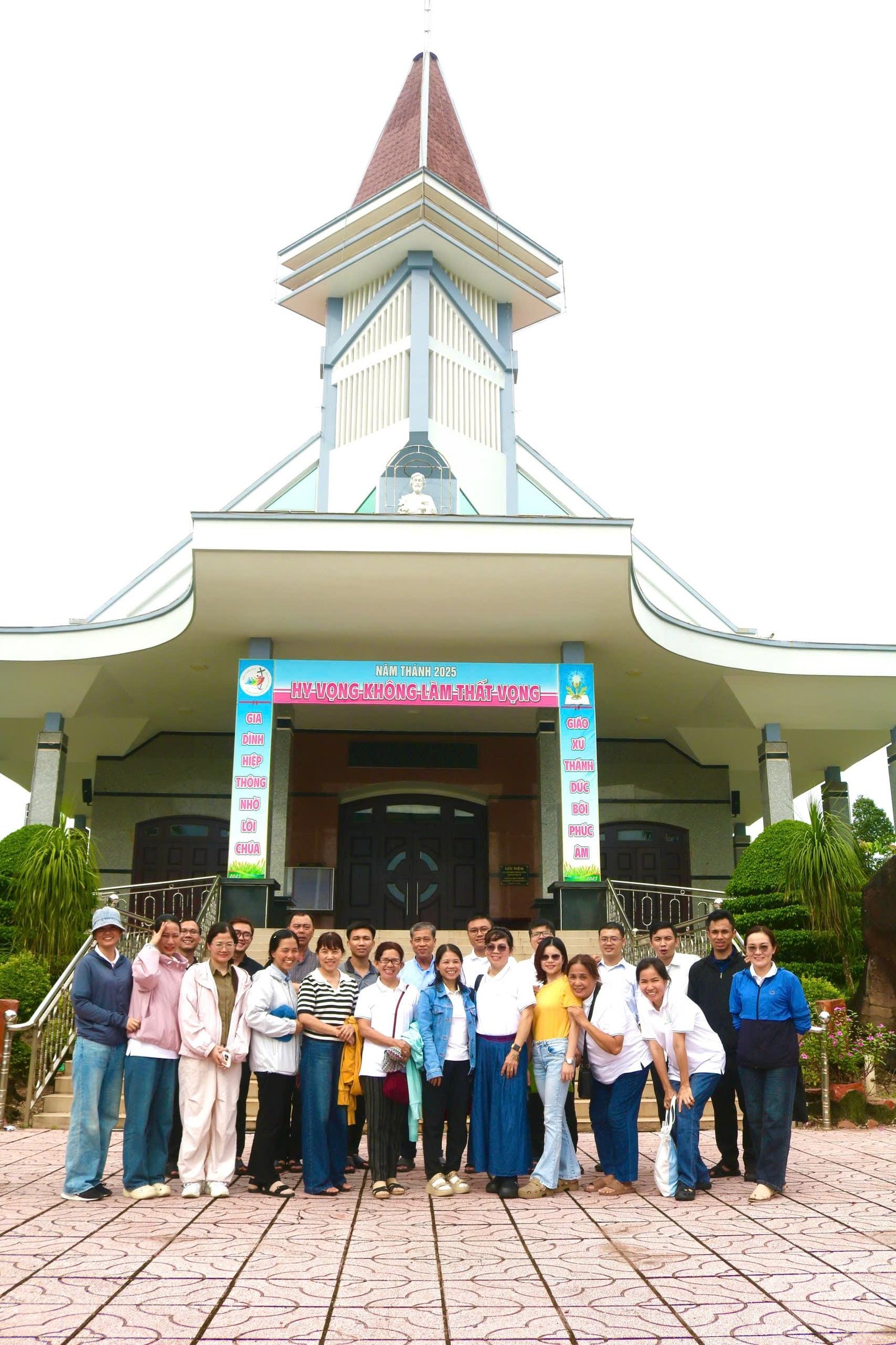Khoảng 12h, mọi người dùng cơm và nghỉ ngơi. Sau đó, đoàn di chuyển đến giáo xứ Phú Lý để viếng nhà thờ, chào cha chánh xứ – vị phụ trách chính của hai giáo điểm.