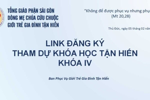Gia Đình Tận Hiến LINK ĐĂNG KÝ THAM DỰ KHÓA HỌC TẬN HIẾN – KHÓA IV (BẢNG ĐĂNG KÝ ONLINE) 1 tháng trước1 mins