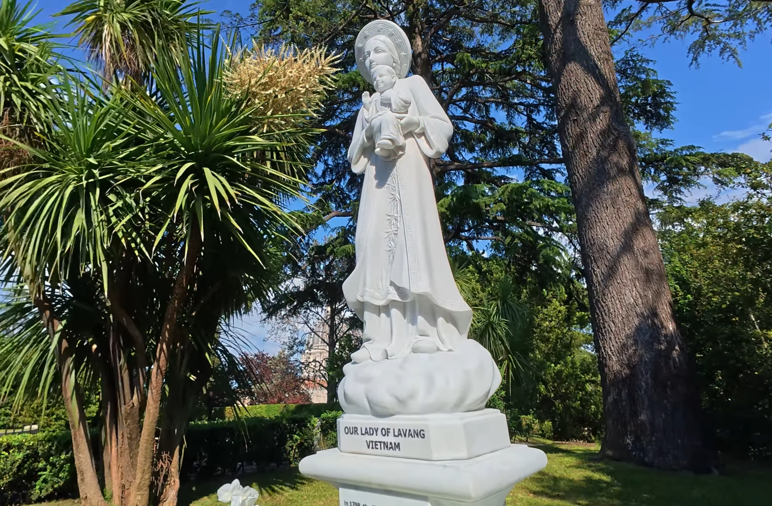 Tượng Đức Mẹ La Vang bằng đá cẩm thạch trắng, xuất xứ từ Quỳ Hợp, Nghệ An, cao 1,6 mét, được đặt trên đế cao 0,6 mét, được điêu khắc tại Ngũ Hành Sơn, Đà Nẵng, bởi nghệ nhân Giuse Trần Văn Giang, và chuyển bằng máy bay sang Roma.