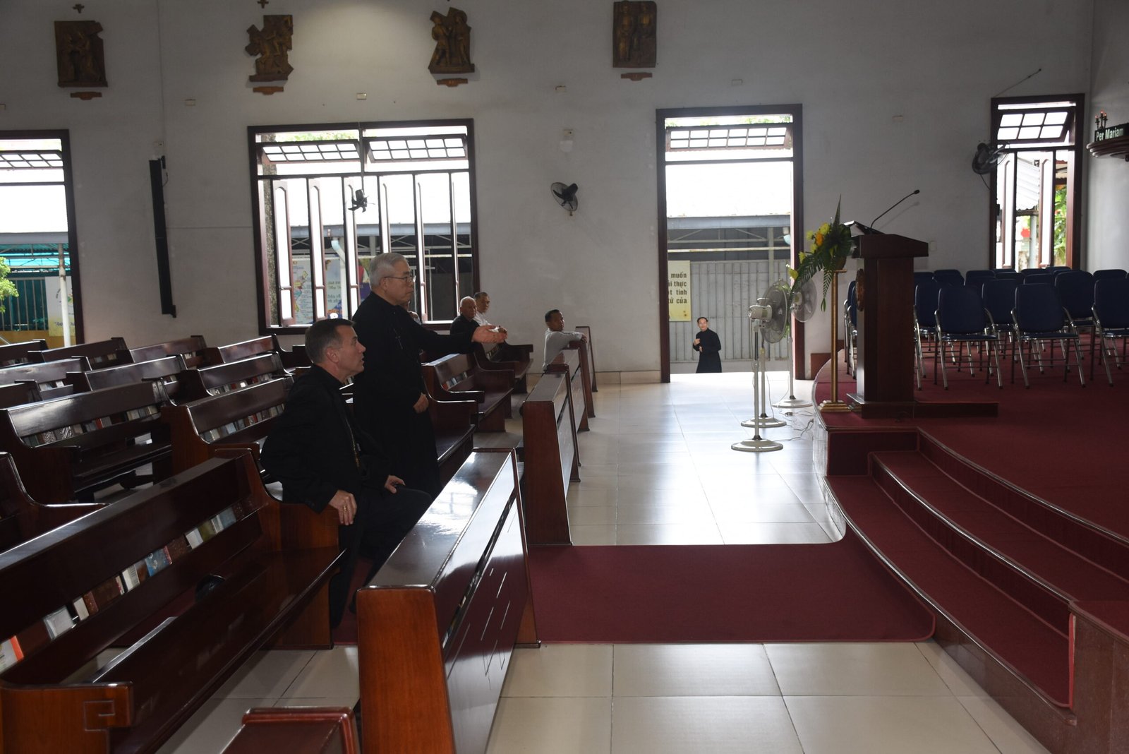 Trong buổi đón tiếp tại Nhà Mẹ, Đức Giám mục David L. Toups đã gặp gỡ thân tình với Cha Tổng Phục vụ Luy Maria, quý cha trong Ban Cố vấn, cùng quý tu sĩ đại diện các cộng đoàn. Ngài lắng nghe giới thiệu về lịch sử hình thành, đặc sủng, linh đạo và các hoạt động mục vụ nổi bật của Dòng, đặc biệt là sự hiện diện của Dòng tại Giáo phận Beaumont trong nhiều năm qua.
