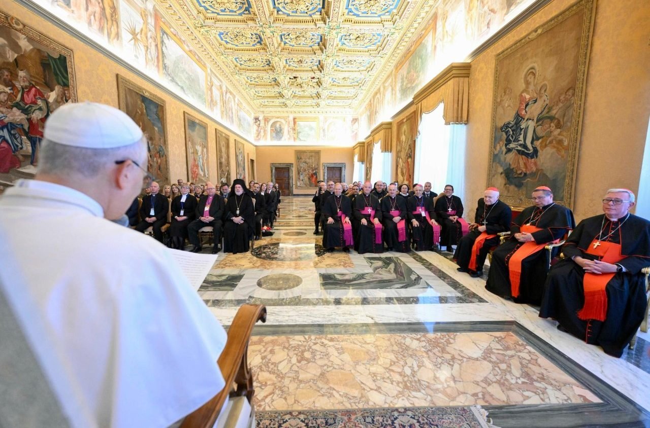 Đức Thánh Cha chào phái đoàn các thành viên của các Hội đồng Giáo hội tham gia ký kết bản cập nhật của Charta Oecumenica (Hiến chương Đại kết) tại Đan viện Tre Fontane, gần nơi Thánh Phaolô chịu tử đạo, bằng lời chào của Thánh Phaolô gửi Timôthê: “Xin Thiên Chúa Cha và Đức Giêsu Kitô, Chúa chúng ta, ban cho anh em ân sủng, lòng thương xót và bình an” (1 Tm 1,2).
