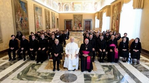 Mở đầu bài diễn văn, nhắc lại rằng Học viện được Đức Giáo hoàng Lêô XIII thành lập năm 1900, theo sáng kiến của các giám mục Bồ Đào Nha nhằm đào tạo hàng giáo sĩ tại Roma, với sự cộng tác quý báu của dòng tộc Visconti de São João da Pesqueira, Đức Thánh Cha đề cao sự cộng tác của giáo sĩ và giáo dân trên hành trình thăng tiến việc loan báo Tin Mừng. Ngài cũng nhấn mạnh nghệ thuật lắng nghe nhau mà các sinh viên cần thực hành vì đây là điều rất quan trọng cho sự hiệp nhất các môn đệ của Chúa.