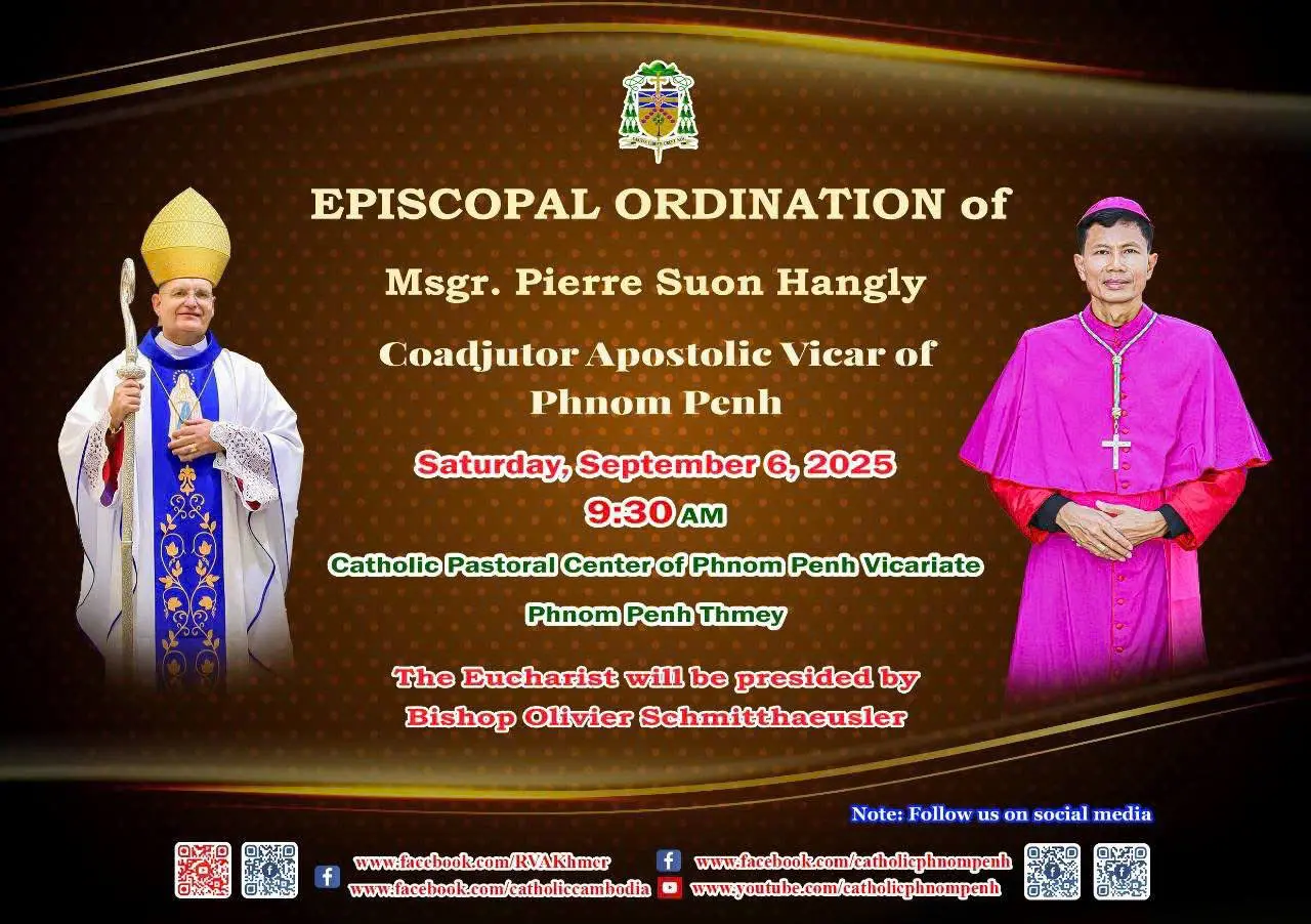 Đức cha Pierre Suon Hangly, năm nay 53 tuổi, được Đức Giáo Hoàng Lêô XIV bổ nhiệm làm Giám mục Phó Miền Tông tòa Phnom Penh (Apostolic Vicariate), Campuchia, vào ngày 28 tháng 6 năm 2025. Hiện nay, Đức Cha Olivier Schmitthaeusler, người Pháp, thuộc Hội Thừa sai Paris, đang đảm nhiệm vai trò Giám mục Miền Tông toà Phnom Penh từ ngày 10 tháng 10 năm 2010. Miền Tông toà Phnom Penh có khoảng 21.000 tín hữu Công giáo trong tổng số gần 16,8 triệu dân (chiếm 0,1%).