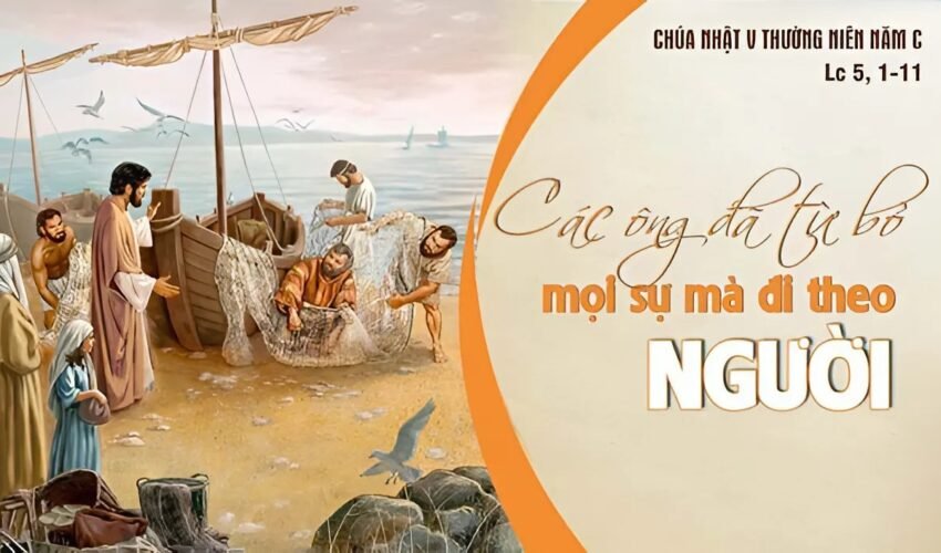 Lời Chúa hôm nay kể về một câu chuyện rất đời thường của những người dân nghèo thuyền chài miền Galilêa. Họ vật vã với sóng gió biển cả suốt đêm. Họ luôn phải đối mặt với biết bao hiểm nguy. Thế nhưng lưới vẫn nhẹ, thuyền vẫn rỗng vì chẳng bắt được con cá nào. Ánh bình minh hôm nay không đem lại cho họ niềm vui. Niềm hân hoan của ngày mới không đến với họ. Họ thất vọng nhiều hơn vui. Một đêm vất vả chẳng được gì là dấu chỉ cho một ngày cơm bữa no bữa đói. Lòng buồn vời vợi. Họ ngồi giặt lưới trong tâm trạng nặng trĩu những âu lo. Thuyền lứơi của họ xem ra đã vô dụng. Bỗng dưng Thầy Giêsu lại muốn sử dụng chiếc thuyền của họ. Chúa mượn thuyền của Phêrô. Con thuyền mà Phêrô tưởng chừng như chẳng giúp ích gì cho ông. Thuyền đánh cá nhưng có được con cá nào đâu? Chúa mượn thuyền Phêrô không phải để đánh cá mà dùng làm phương tiện rao giảng tin mừng. Cuối đoạn tin mừng Chúa lại mượn luôn con người Phêrô làm kẻ chuyên lo chài lưới người.