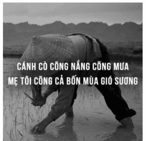 Trước hết, câu ca dao gợi nhớ đến mẹ trong đời thường. “Cánh cò cõng nắng cõng mưa” là hình ảnh quen thuộc của người phụ nữ nông dân. Cánh cò nhỏ bé nhưng bền bỉ, dãi dầu qua bao mưa nắng, để lo miếng cơm manh áo. Đó chính là bóng dáng mẹ hiền : lặng lẽ gánh vác, chấp nhận mọi nhọc nhằn, chỉ mong con cái khôn lớn nên người. Tiếp đến, “Mẹ tôi gánh cả một đời gió sương” đã nâng nỗi vất vả ấy thành một hành trình trọn kiếp.