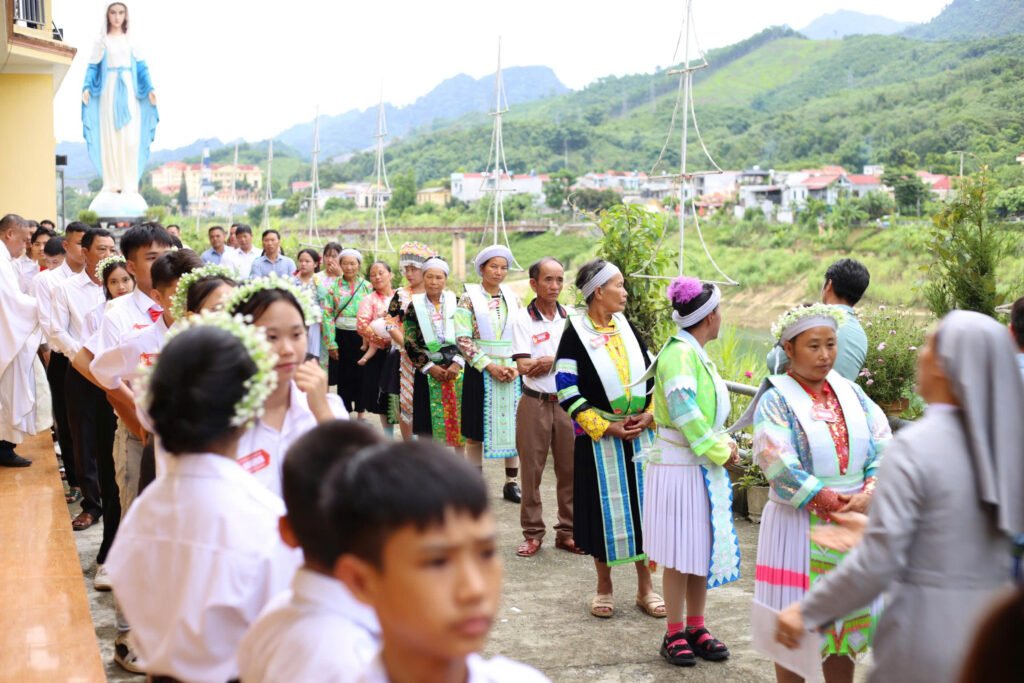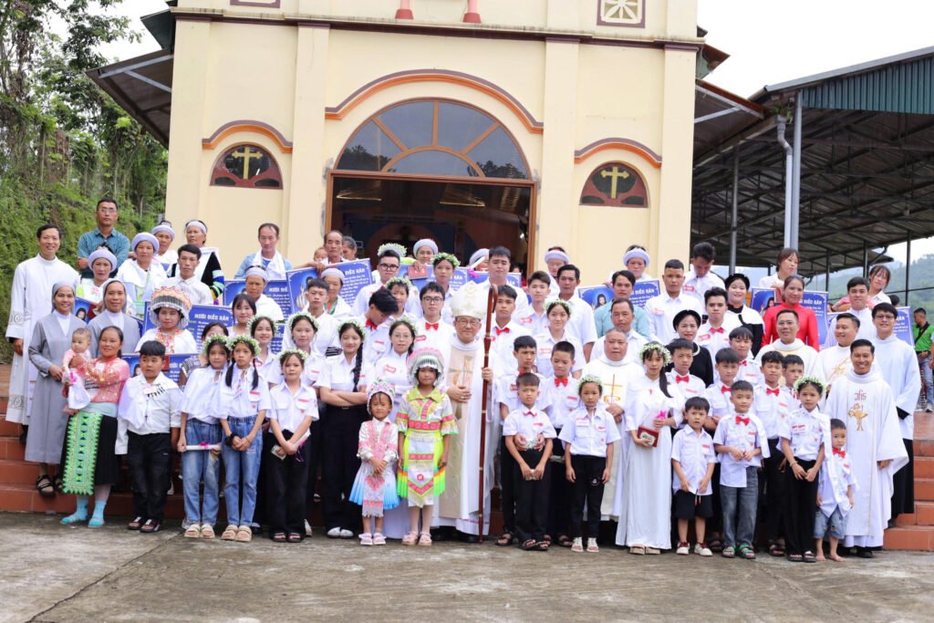 Vào lúc 9 giờ sáng, giữa khung cảnh trang nghiêm đầy ánh sáng tràn phúc, giáo xứ Na Hang hân hoan mừng kính lễ Đức Mẹ Hồn Xác Lên Trời. Một ngày thiêng liêng khiến lòng người rộn rã và đầy hy vọng, cũng trong ngày hôm đó giáo xứ chúng con đã vinh dự được đón tiếp Đức cha Giuse Đỗ Quang Khang – Giám mục Giáo phận Bắc Ninh đến ban Bí tích Rửa Tội, Thêm Sức và Rước Lễ lần đầu cho các em thiếu nhi.