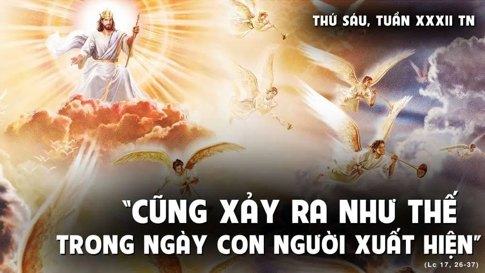 Khi ấy, Chúa Giêsu phán cùng các môn đệ rằng: “Như sự kiện đã xảy ra thời Noe thế nào, thì trong ngày Con Người cũng xảy đến như vậy. Thiên hạ cứ ăn uống, cưới vợ gả chồng, mãi cho tới ngày Noe vào tầu, rồi nước lụt đến tiêu diệt mọi người.