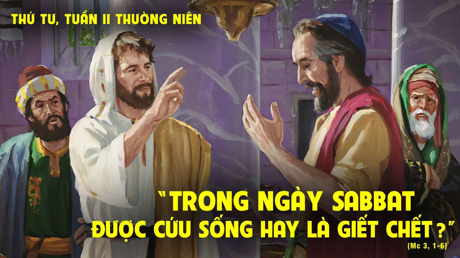 Khi ấy, Chúa Giêsu lại vào hội đường và ở đó có một người khô bại một tay. Người ta để ý quan sát xem Chúa có chữa bệnh trong ngày Sabbat không, để tố cáo Người. Chúa bảo người có tay khô bại rằng: “Ngươi hãy đứng ra giữa đây”. Rồi Người bảo họ: “Trong ngày Sabbat được làm sự lành hay sự dữ? Được cứu sống hay là giết chết?” Nhưng họ thinh lặng. Bấy giờ Người thịnh nộ đưa mắt nhìn họ và buồn phiền vì lòng họ chai đá, Người bảo bệnh nhân rằng: “Hãy giơ tay ra”. Người đó giơ tay ra và tay anh ta được lành. Lập tức, những người biệt phái đi ra bàn tính với những kẻ thuộc phái Hêrôđê chống đối Người và tìm cách hại Người.