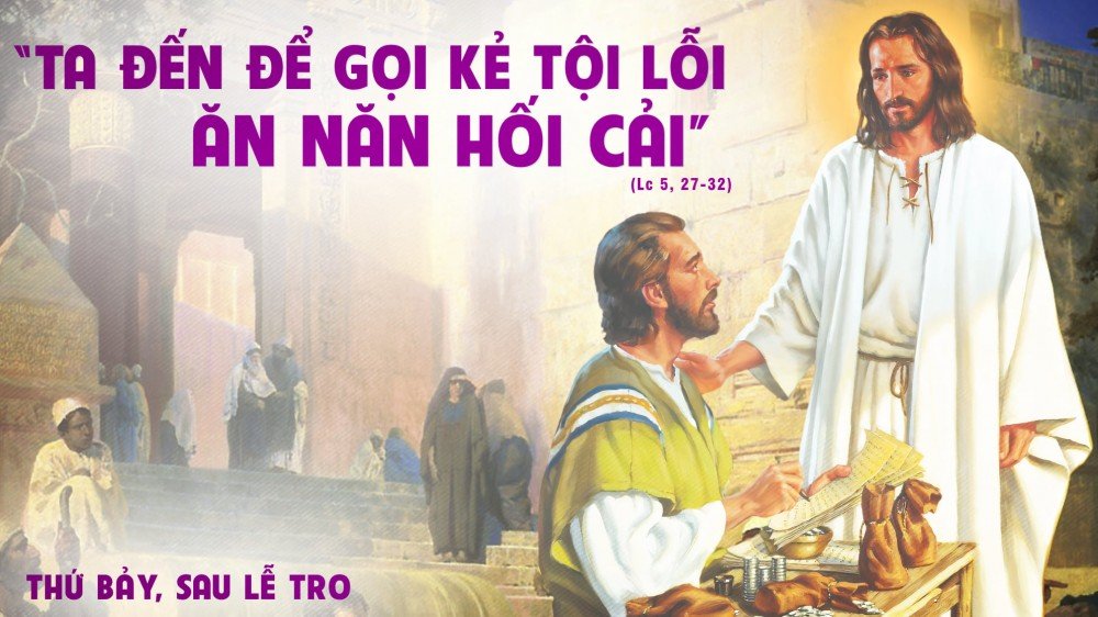 Khi ấy, Chúa Giêsu trông thấy một người quan thuế tên là Lêvi đang ngồi ở bàn thu thuế, Ngài bảo ông: “Hãy đi theo Ta”. Ông liền bỏ mọi sự đứng dậy theo Người. Lêvi đã dọn một bữa tiệc linh đình thết đãi Người tại nhà ông. Có đông người thu thuế và nhiều người khác cùng ngồi ăn với các ngài. Những người biệt phái và các luật sĩ của họ lẩm bẩm với các môn đệ của Người rằng: “Sao các người lại ăn uống với những người thu thuế và tội lỗi như vậy?” Chúa Giêsu trả lời họ rằng: “Những ai mạnh khoẻ không cần tới thầy thuốc, chỉ những người đau yếu mới cần thôi. Ta đến không phải để kêu mời người công chính, nhưng để gọi kẻ tội lỗi ăn năn hối cải”.