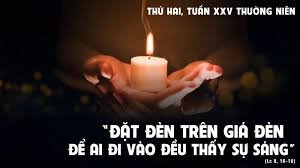 Khi ấy, Chúa Giêsu phán cùng dân chúng rằng: “Không ai thắp đèn rồi lấy hũ che lại, hay đặt dưới gầm giường: nhưng đặt nó trên giá đèn, để những ai đi vào đều thấy ánh sáng. Vì chẳng có gì kín nhiệm mà không bị tỏ ra, và không có gì ẩn giấu mà không bị lộ ra cho người ta biết. Vậy các ngươi hãy ý tứ xem các ngươi nghe thế nào! Vì ai có, sẽ được cho thêm; còn ai không có, cả điều mình tưởng có cũng sẽ bị lấy đi”.