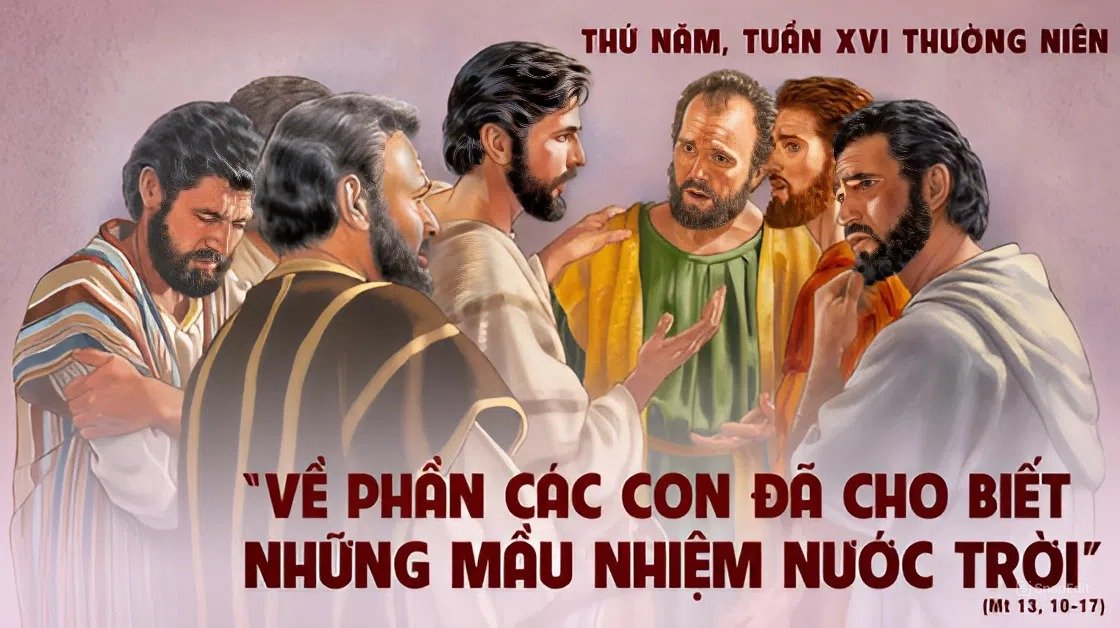 Khi ấy, các môn đệ đến gần thưa Chúa Giêsu rằng: “Tại sao Thầy dùng dụ ngôn mà nói với họ?” Người đáp lại: “Về phần các con, đã cho biết những mầu nhiệm Nước Trời, còn họ thì không cho biết. Vì ai đã có, thì ban thêm cho họ được dư dật; còn kẻ không có, thì cái họ có cũng bị lấy đi. Bởi thế, Thầy dùng dụ ngôn mà nói với họ: vì họ nhìn mà không thấy, lắng tai mà không nghe và không hiểu chi hết. Thế mới ứng nghiệm lời tiên tri Isaia nói về họ rằng: “Các ngươi lắng tai nghe mà chẳng hiểu, trố mắt nhìn mà chẳng thấy gì. Vì lòng dân này đã ra chai đá, họ đã bịt tai, và nhắm mắt lại, kẻo mắt thấy được, tai nghe được, và lòng chúng hiểu được mà hối cải, và Ta lại chữa chúng cho lành”.