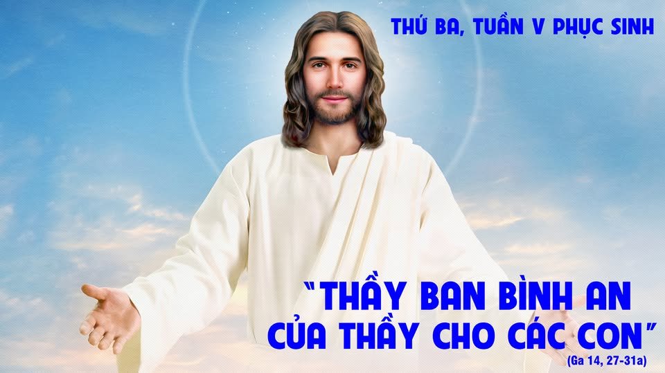 Khi ấy, Chúa Giêsu phán cùng các môn đệ rằng: “Thầy để lại bình an cho các con, Thầy ban bình an của Thầy cho các con. Thầy ban cho các con không như thế gian ban tặng. Lòng các con đừng xao xuyến và đừng sợ hãi. Các con đã nghe Thầy nói với các con rằng: Thầy đi, rồi Thầy sẽ trở lại với các con. Nếu các con yêu mến Thầy, thì các con hãy vui mừng vì Thầy về với Cha, bởi lẽ Cha trọng hơn Thầy. Giờ đây Thầy nói với các con trước khi việc xảy ra, để khi việc xảy ra, thì các con tin. Thầy không còn nói nhiều với các con nữa, vì thủ lãnh thế gian đã đến. Nó không có quyền lực gì đối với Thầy. Nhưng để cho thế gian biết rằng Thầy yêu mến Cha, thì Thầy làm như Cha đã truyền dạy”.