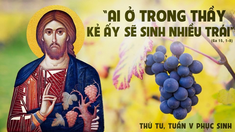 Khi ấy, Chúa Giêsu phán cùng các môn đệ rằng: “Thầy là cây nho thật, và Cha Thầy là người trồng nho. Nhành nào trong Thầy không sinh trái thì Người chặt đi, còn nhành nào trong Thầy không sinh trái thì Người chặt đi, còn nhành nào sinh trái thì Người tỉa sạch để nó sai trái hơn. Các con đã được tỉa sạch nhờ lời Thầy đã nói với các con. Các con ở trong Thầy, và Thầy ở trong các con. Cũng như nhành nho tự nó không thể sinh trái được, nếu không dính liền với cây nho; các con cũng vậy, nếu không ở trong Thầy.
