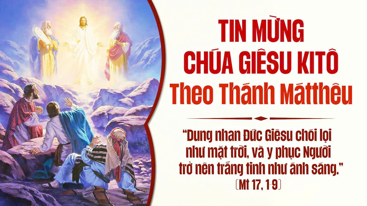 Khi ấy, Chúa Giêsu đã gọi Phêrô, Giacôbê và Gioan là em ông này, và Người đưa các ông tới chỗ riêng biệt trên núi cao. Người biến hình trước mặt các ông: mặt Người chiếu sáng như mặt trời, áo Người trở nên trắng như tuyết. Và đây Môsê và Êlia hiện ra, và đàm đạo với Người. Bấy giờ ông Phêrô lên tiếng, thưa Chúa Giêsu rằng: “Lạy Thầy, chúng con được ở đây thì tốt lắm. Nếu Thầy ưng, chúng con xin làm ba lều, một cho Thầy, một cho Môsê, và một cho Êlia”. Lúc ông còn đang nói, thì có một đám mây sáng bao phủ các Ngài, và có tiếng từ trong đám mây phán rằng: “Ðây là Con Ta yêu dấu rất đẹp lòng Ta, các ngươi hãy nghe lời Người”. Nghe thấy vậy, các môn đệ ngã sấp xuống, và hết sức sợ hãi. Bấy giờ Chúa Giêsu đến gần, động đến các ông và bảo: “Các con hãy đứng dậy, đừng sợ”. Ngước mắt lên, các ông thấy chẳng còn ai, trừ ra một mình Chúa Giêsu. Và trong lúc từ trên núi đi xuống, Chúa Giêsu đã ra lệnh cho các ông rằng: “Các con không được nói với ai về việc đã thấy, cho tới khi Con Người từ cõi chết sống lại”.