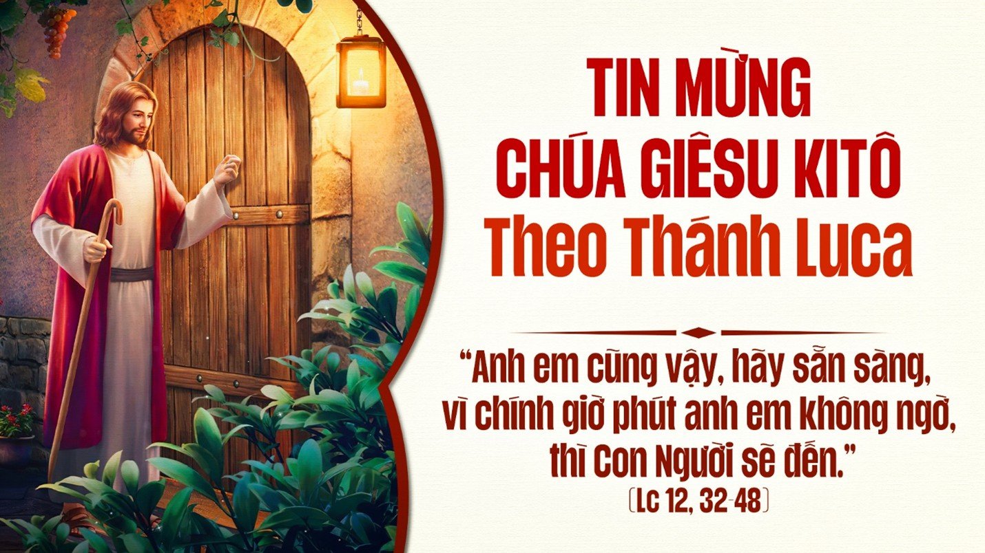 35 “Anh em hãy thắt lưng cho gọn, thắp đèn cho sẵn. 36 Hãy làm như những người đợi chủ đi ăn cưới về, để khi chủ vừa về tới và gõ cửa, là mở ngay. 37 Khi chủ về mà thấy những đầy tớ ấy đang tỉnh thức, thì thật là phúc cho họ. Thầy bảo thật anh em: chủ sẽ thắt lưng, đưa họ vào bàn ăn, và đến bên từng người mà phục vụ. 38 Nếu canh hai hoặc canh ba ông chủ mới về, mà còn thấy họ tỉnh thức như vậy, thì thật là phúc cho họ. 39 Anh em hãy biết điều này: nếu chủ nhà biết giờ nào kẻ trộm đến, hẳn ông đã không để nó khoét vách nhà mình đâu. 40 Anh em cũng vậy, hãy sẵn sàng, vì chính giờ phút anh em không ngờ, thì Con Người sẽ đến.”