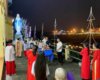Cuộc rước bắt đầu từ khuôn viên nhà xứ, tiến dọc theo bờ sông trong ánh đèn lung linh rực sáng, tạo nên một bầu khí trang nghiêm và thánh thiêng. Đi đầu đoàn rước là thánh giá nến cao, tiếp theo là quý ông, quý bà, đông đảo cộng đoàn giáo dân và cuối cùng là kiệu tượng Lòng Chúa Thương Xót được trang hoàng với những đóa hoa hồng tươi thắm.