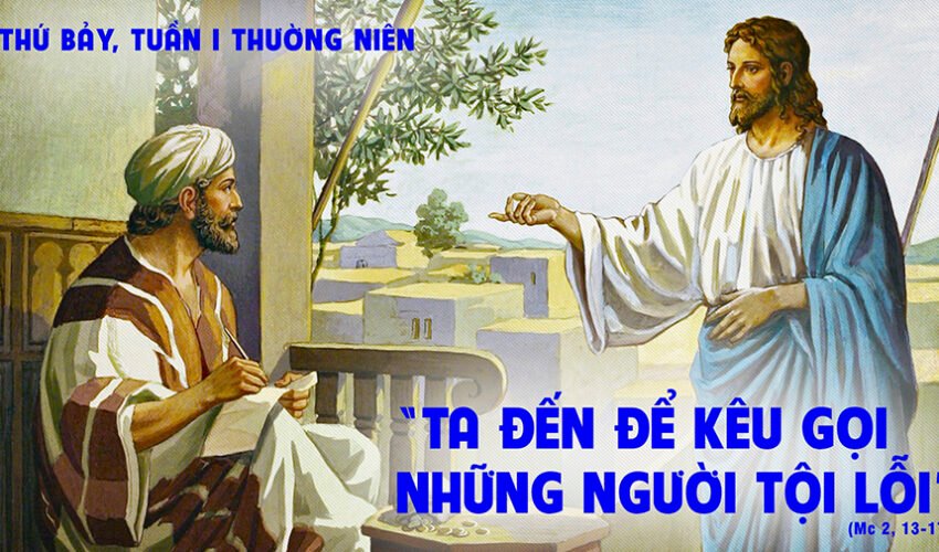 Khi ấy Chúa Giêsu đi dọc theo bờ biển, toàn dân đến cùng Người và Người giảng dạy họ. Khi vừa đi qua, Người thấy ông Lêvi con của Alphê, đang ngồi nơi bàn thu thuế. Người bảo ông: “Hãy theo Ta”. Ông liền đứng dậy theo Người. Và xảy ra là khi Người dùng bữa tại nhà ông, nhiều người thu thuế và tội lỗi cùng đồng bàn với Chúa Giêsu và các môn đệ của Người, vì đã có nhiều kẻ theo Người. Những luật sĩ và biệt phái thấy Người ngồi ăn uống với những người thu thuế và tội lỗi, liền nói với các môn đệ Người rằng: “Tại sao thầy các ông lại ăn uống với những người thu thuế và tội lỗi?” Nghe vậy, Chúa Giêsu bảo họ: “Những người khoẻ mạnh không cần gì đến thầy thuốc, nhưng là những người đau yếu. Ta không đến để kêu gọi những người công chính, mà kêu gọi những người tội lỗi”.