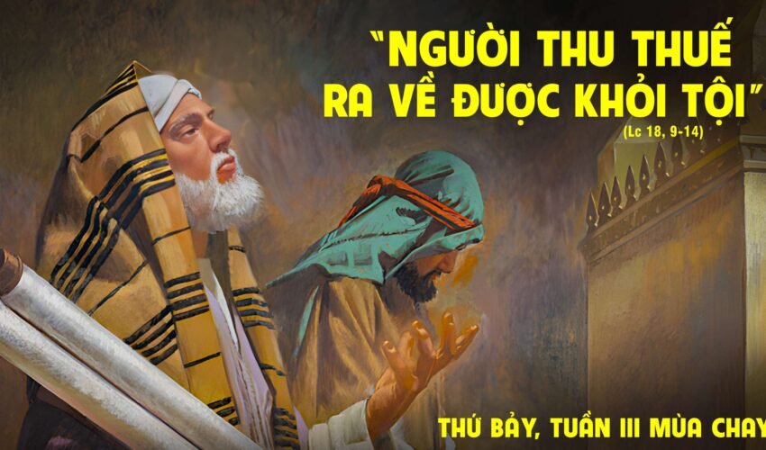 Khi ấy, Chúa Giêsu nói dụ ngôn sau đây với những người hay tự hào mình là người công chính và hay khinh bỉ kẻ khác: “Có hai người lên đền thờ cầu nguyện, một người biệt phái, một người thu thuế. Người biệt phái đứng thẳng, cầu nguyện rằng: “Lạy Chúa, tôi cảm tạ Chúa vì tôi không như các người khác: tham lam, bất công, ngoại tình, hay là như tên thu thuế kia; tôi ăn chay mỗi tuần hai lần, và dâng một phần mười tất cả các hoa lợi của tôi”. Người thu thuế đứng xa xa, không dám ngước mắt lên trời, đấm ngực mà nguyện rằng: “Lạy Chúa, xin thương xót con là kẻ có tội”. Ta bảo các ngươi: người này ra về được khỏi tội, còn người kia thì không. Vì tất cả những ai tự nâng mình lên, sẽ bị hạ xuống; và ai hạ mình xuống, sẽ được nâng lên”.