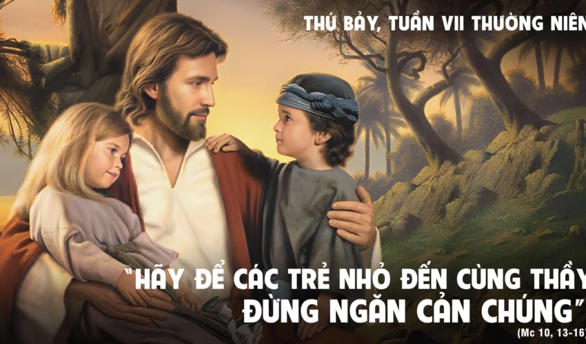 Khi ấy, người ta đưa những trẻ nhỏ đến cùng Chúa Giêsu để Người đặt tay trên chúng, nhưng các môn đệ khiển trách họ. Thấy vậy, Chúa Giêsu bất bình và bảo các ông rằng: “Hãy để các trẻ nhỏ đến cùng Thầy, đừng ngăn cản chúng, vì nước Thiên Chúa là của những người giống như chúng. Thầy bảo thật các con: Ai không đón nhận nước Thiên Chúa như trẻ nhỏ, sẽ không được vào nước đó”. Rồi Người ôm chúng, đặt tay ban phép lành cho chúng.