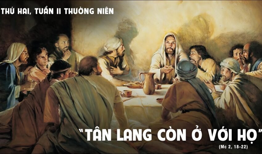 Khi ấy, môn đồ của Gioan và các người biệt phái ăn chay, họ đến nói với Chúa Giêsu rằng: “Tại sao môn đồ của Gioan và các người biệt phái ăn chay, còn môn đồ Ngài lại không ăn chay?” Chúa Giêsu nói với họ: “Các khách dự tiệc cưới có thể ăn chay khi tân lang còn ở với họ không? Bao lâu tân lang còn ở với họ, thì họ không thể ăn chay được. Nhưng sẽ đến ngày tân lang bị đem đi, bấy giờ họ sẽ ăn chay. Không ai lấy vải mới mà vá áo cũ, chẳng vậy, miếng vải vá sẽ rút lại mà kéo áo cũ, và chỗ rách lại tệ hơn. Cũng không ai đổ rượu mới vào bầu da cũ, chẳng vậy, rượu sẽ làm vỡ bầu da, và rượu đổ, bầu da hư. Nhưng rượu mới phải để trong bầu da mới”.
