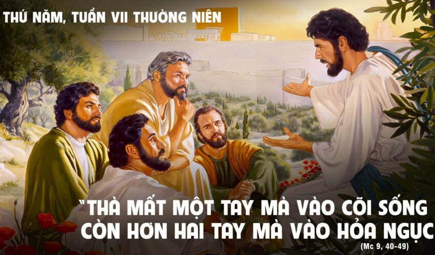 “Nếu tay con nên dịp tội cho con, hãy chặt tay đó đi: thà con mất một tay mà được vào cõi sống, còn hơn là có đủ hai tay mà phải vào hoả ngục, trong lửa không hề tắt. Và nếu chân con làm dịp tội cho con, hãy chặt chân đó đi: thà con mất một chân mà được vào cõi sống, còn hơn là có đủ hai chân mà phải ném xuống hoả ngục. Và nếu mắt con làm dịp tội cho con, hãy móc mắt đó đi, thà con còn một mắt mà vào nước Thiên Chúa, còn hơn là có đủ hai mắt mà phải ném xuống hoả ngục, nơi mà dòi bọ rúc rỉa nó không hề chết và lửa không hề tắt. Vì mọi người sẽ bị ướp bằng lửa.
