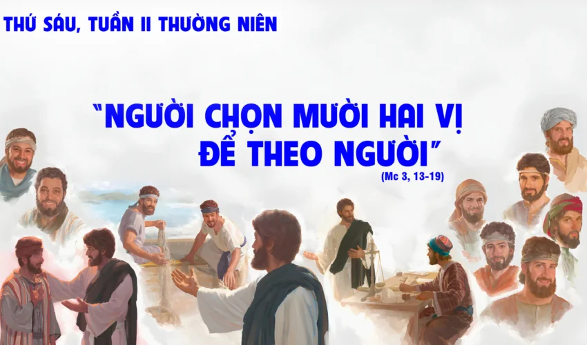 Khi ấy, Chúa Giêsu lên núi và gọi những kẻ Người muốn gọi, và họ đến cùng Người. Người chọn mười hai vị để theo Người, và sai các ông đi giảng và ban cho các ông quyền trừ quỷ. Mười hai vị ấy là: Simon mà Người đặt tên là Phêrô, Giacôbê con ông Giêbêđê, và Gioan là em Giacôbê, (cả hai được Người đặt tên là Boanerges, nghĩa là con của sấm sét), rồi đến Anrê, Philipphê, Bartôlômêô, Matthêu, Tôma, Giacôbê con ông Alphê, Tađêô, Simon nhiệt tâm, và Giuđa Iscariô là kẻ nộp Người.