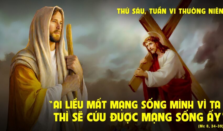 Khi ấy, Chúa Giêsu tập họp dân chúng cùng các môn đệ lại, và phán: “Ai muốn theo Ta, hãy từ bỏ mình, vác thập giá mình mà theo Ta. Quả thật, ai muốn cứu mạng sống mình, thì sẽ mất. Còn ai chịu mất mạng sống mình vì Ta và vì Phúc Âm, thì sẽ cứu được mạng sống mình. Vì chưng được lời lãi cả thế gian mà mất mạng sống mình, thì nào được ích gì? Và người ta lấy gì mà đánh đổi mạng sống mình? Ai hổ thẹn vì Ta và vì lời Ta trong thế hệ ngoại tình và tội lỗi này, thì Con Người cũng sẽ hổ thẹn từ khước nó, khi Người đến trong vinh quang của Cha Người cùng với các thần thánh”.