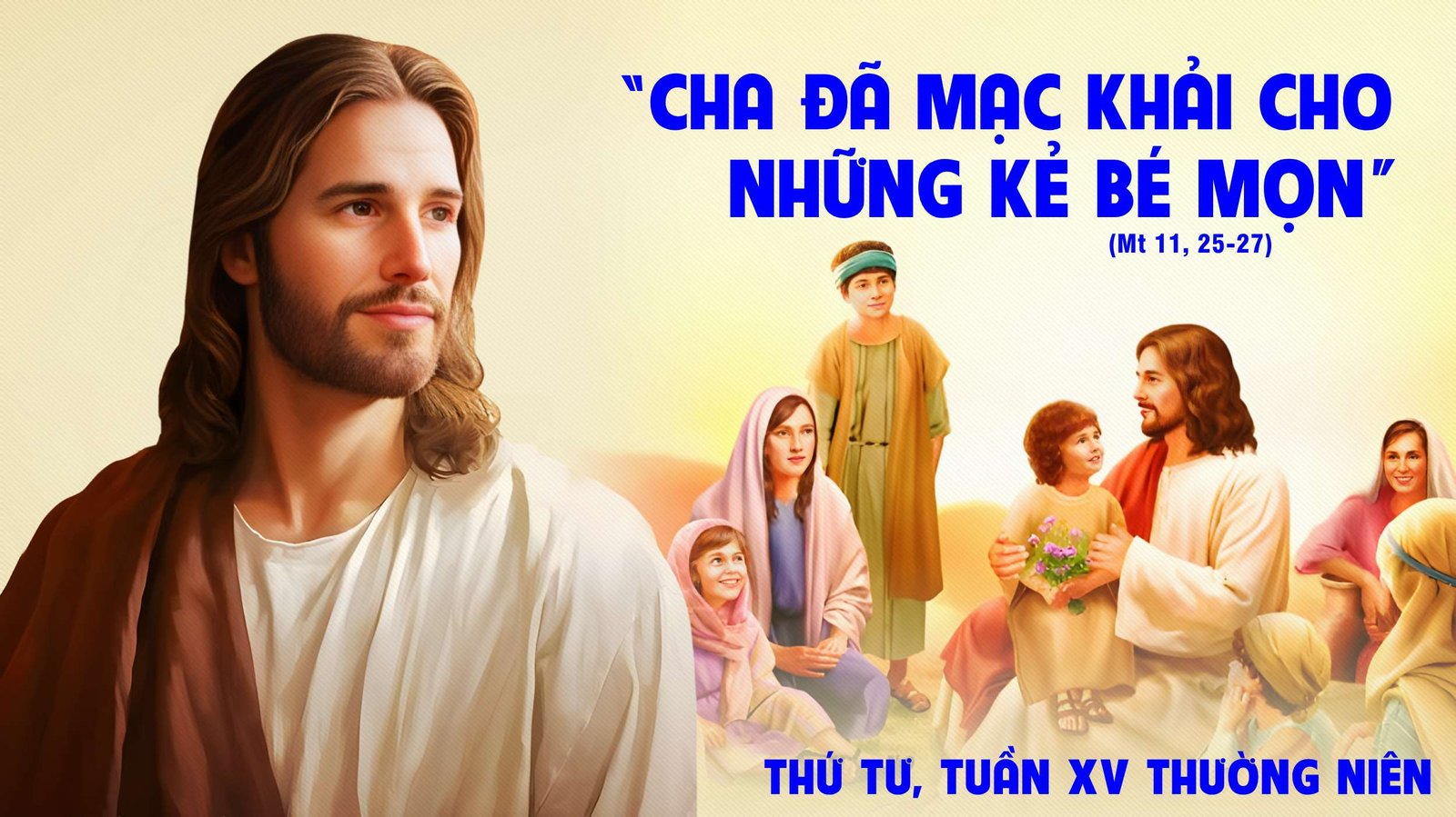 Khi ấy, Chúa Giêsu thưa rằng: “Lạy Cha là Chúa trời đất, Con xưng tụng Cha, vì Cha đã giấu không cho những người hiền triết và khôn ngoan biết những điều ấy, mà lại mạc khải cho những kẻ bé mọn. Vâng, lạy Cha, vì ý Cha muốn như vậy. Mọi sự đã được Cha Ta trao phó cho Ta. Và không ai biết Con trừ ra Cha; và cũng không ai biết Cha trừ ra Con và kẻ Con muốn mạc khải cho”.