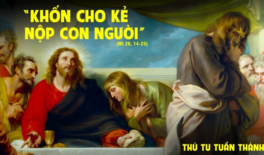 Chiều đến, Người ngồi bàn ăn với mười hai môn đệ. Và khi các ông đang ăn, Người nói: “Thầy nói thật với các con: có một người trong các con sẽ nộp Thầy”. Môn đệ rất buồn rầu và từng người bắt đầu hỏi Người: “Thưa Thầy, có phải con không?” Người trả lời: “Kẻ giơ tay cùng chấm vào đĩa với Thầy, đó chính là kẻ sẽ nộp Thầy. Thật ra, Con Người sẽ ra đi như đã chép về Người, nhưng khốn cho kẻ nộp Con Người, thà kẻ đó đừng sinh ra thì hơn!”