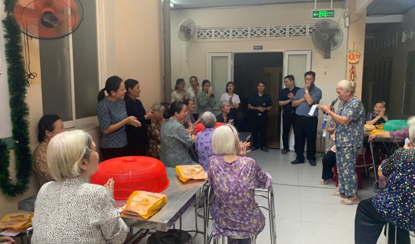 Sau khi rời Viện Dưỡng Lão Suối Tiên, phái đoàn tiếp tục hành trình đến Mái ấm Thiên Ân. Tại đây, không khí cũng ngập tràn niềm vui. Cha đặc trách và quý thầy mang đến không chỉ những món quà mà còn cả những bài hát tươi vui, như một món quà tinh thần ý nghĩa. Những tiếng cười vang vọng khắp không gian khi các cụ cùng hòa mình vào âm nhạc. Qua tiếng hát, không chỉ các cụ mà cả mọi người đều cảm nhận được niềm hy vọng và sức sống mới của mùa Xuân đang lan tỏa. Những bài ca nhẹ nhàng và vui nhộn đã góp phần xua tan đi những nỗi buồn, mang lại sự gần gũi giữa các thế hệ.