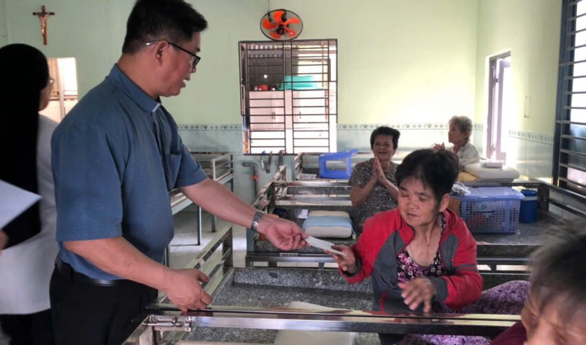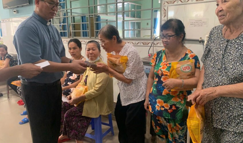 Chuyến thăm bắt đầu vào một buổi sáng đẹp trời, khi ánh nắng vàng rực rỡ rọi xuống những con đường mà chúng tôi đã đi qua. Có mặt tại Viện Dưỡng Lão Suối Tiên: 617 A (528 cũ) ấp Suối Tiên, Cây Gáo – Huyện Trảng Bom – Tỉnh Đồng Nai. Nơi đây là mái nhà đầy yêu thương của 130 cụ bà đang được 8 Sơ thuộc Dòng Đaminh Tam Hiệp chăm sóc. Anh em trong phái đoàn nhanh chóng chuẩn bị những phần quà bao gồm bột ngũ cốc và tiền mừng dành cho các cụ. Niềm vui hiện lên trên gương mặt của các cụ khi nhận quà đã khiến chúng tôi cảm thấy ấm lòng. Không chỉ dừng lại ở những phần quà, chúng tôi còn dành thời gian hỏi thăm và trò chuyện với từng cụ bà, lắng nghe những câu chuyện đời thường, cảm nhận được tình yêu thương và những nỗi niềm riêng mà các cụ chia sẻ.
