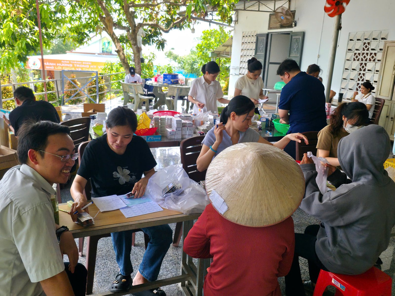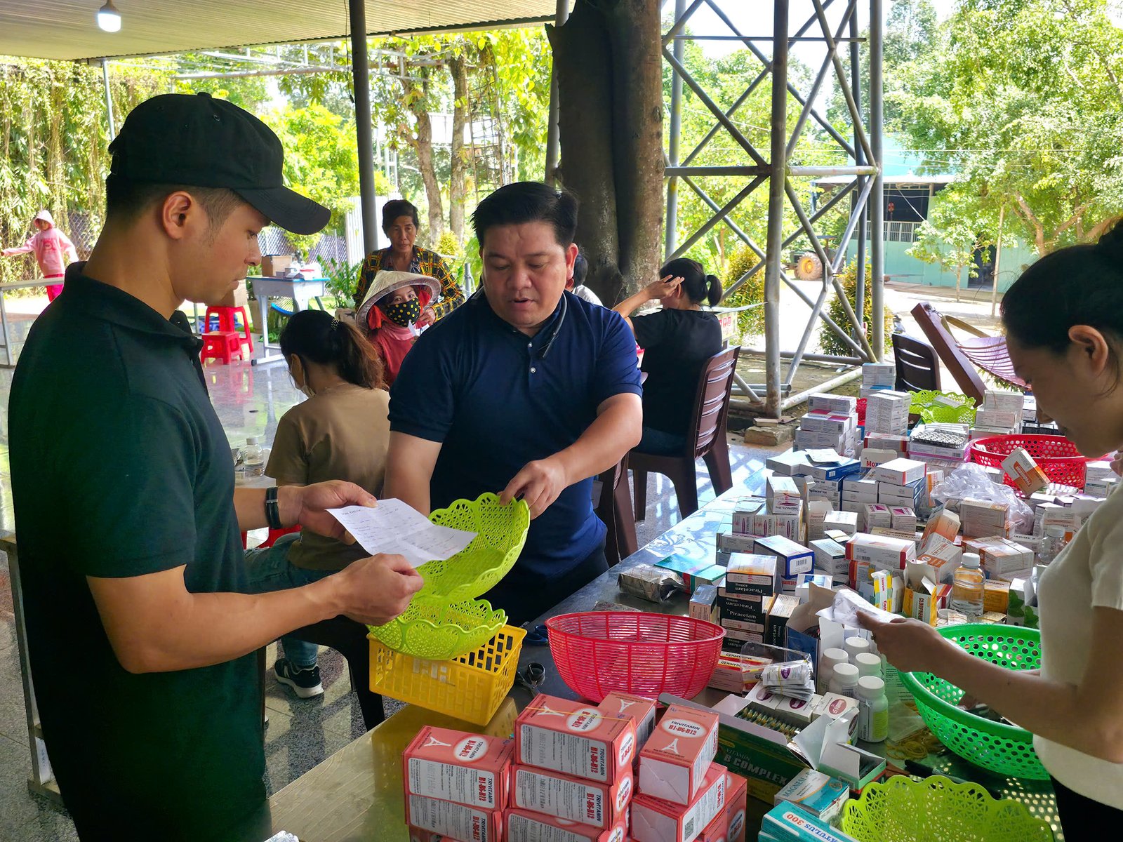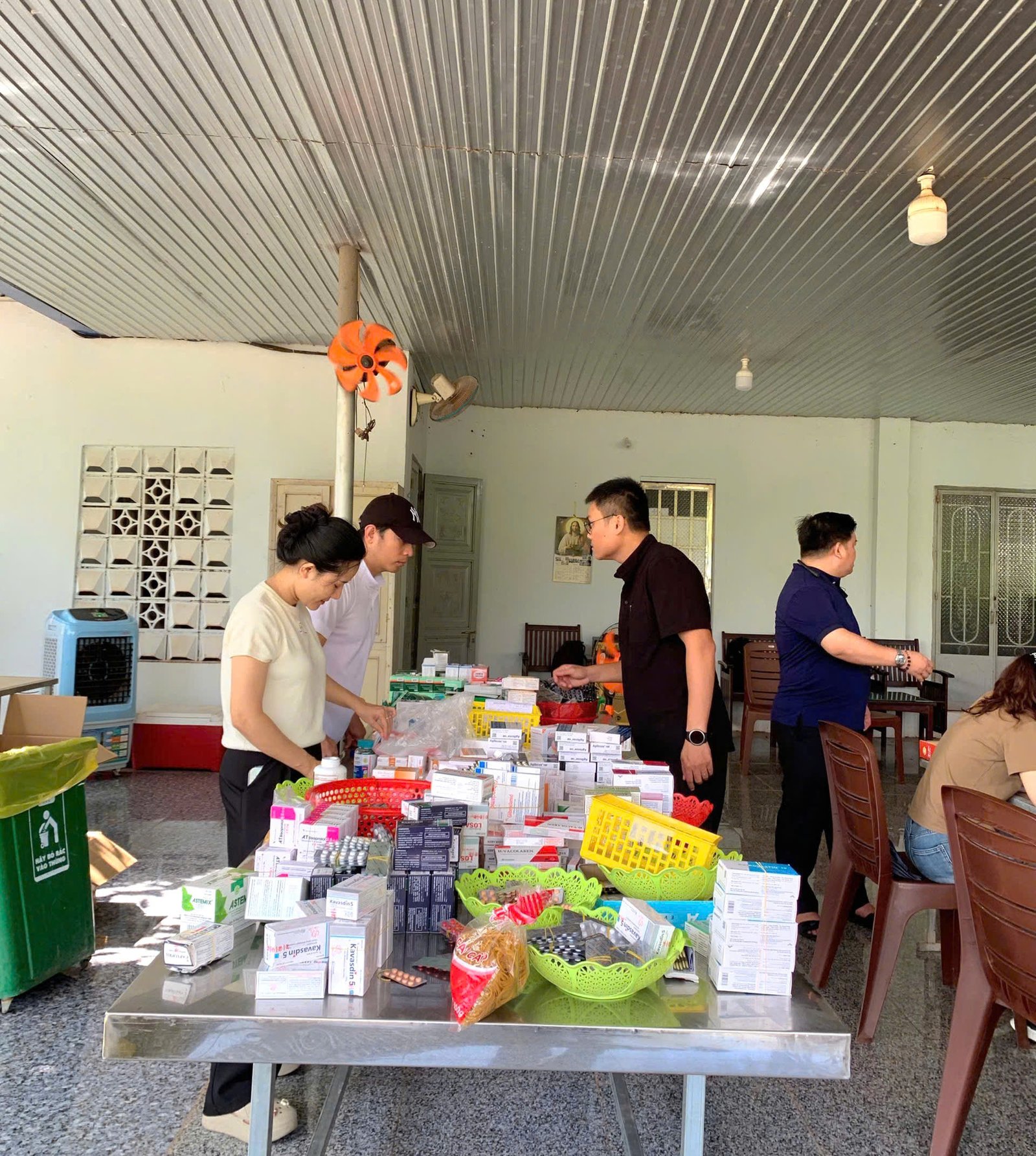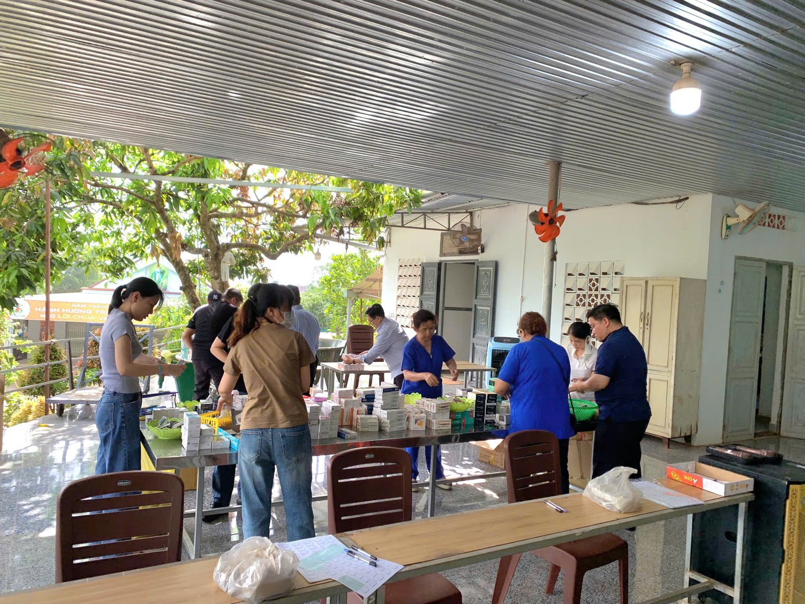 Sau khi thăm khám, bà con tiếp tục được hướng dẫn đến quầy phát thuốc, nơi quý thầy và cộng tác viên ân cần trao tận tay từng túi thuốc được chuẩn bị sẵn theo đơn. Kèm theo đó là những lời dặn dò cẩn trọng về liều lượng, cách dùng thuốc và chế độ sinh hoạt phù hợp với từng bệnh nhân. Dù điều kiện vật chất còn hạn chế, mọi khâu vẫn được tổ chức ngăn nắp, nhịp nhàng, phản ánh sự tận tụy trong phục vụ.