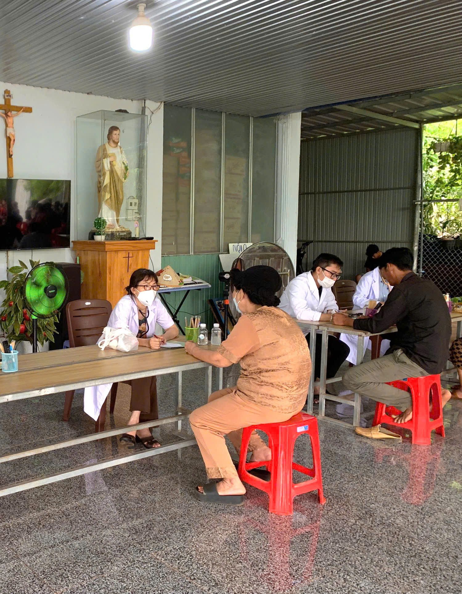 Từ khâu đo huyết áp, xét nghiệm đường huyết, chẩn đoán bệnh, đến phát thuốc, mọi quy trình đều được hướng dẫn chu đáo qua từng trạm. Nhiều cụ già sức yếu phải được anh chị em cộng tác viên dìu dắt suốt buổi, để đảm bảo an toàn và tránh mọi rủi ro. Sự chăm sóc tỉ mỉ không chỉ mang tính chuyên môn, mà còn là biểu hiện cụ thể của một tình yêu thương chữa lành đến từ Tin Mừng.